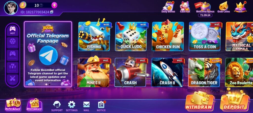 - Crash and Mines Games: Try fast, high-risk, high-reward games with instant results.